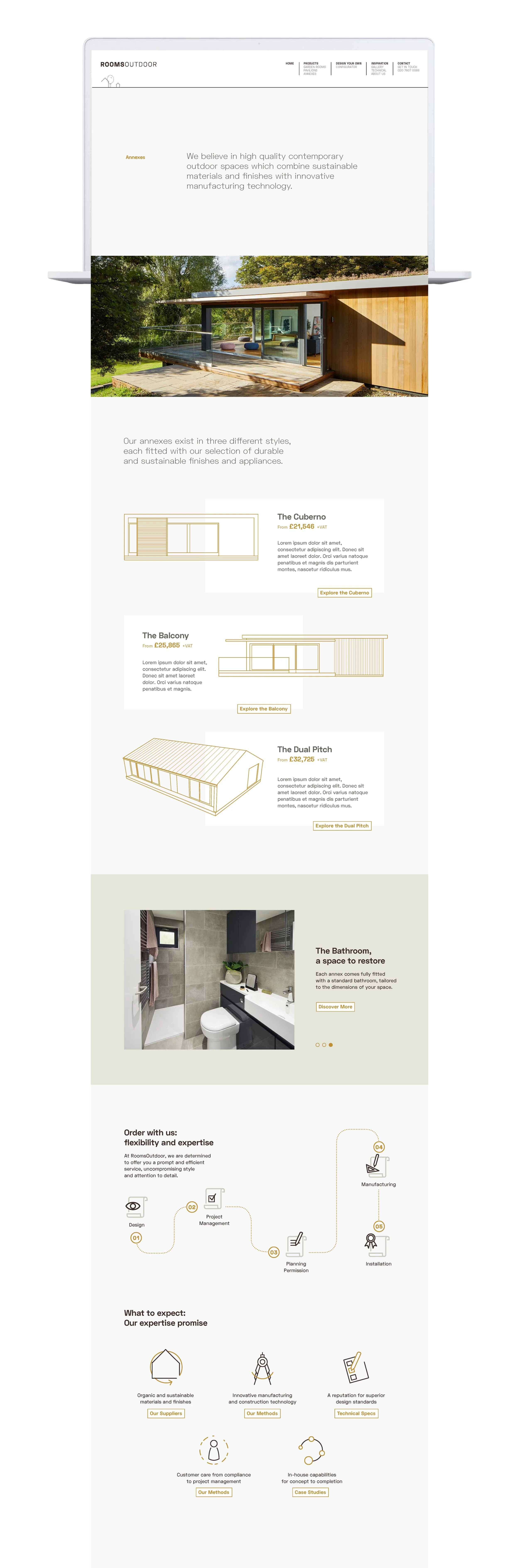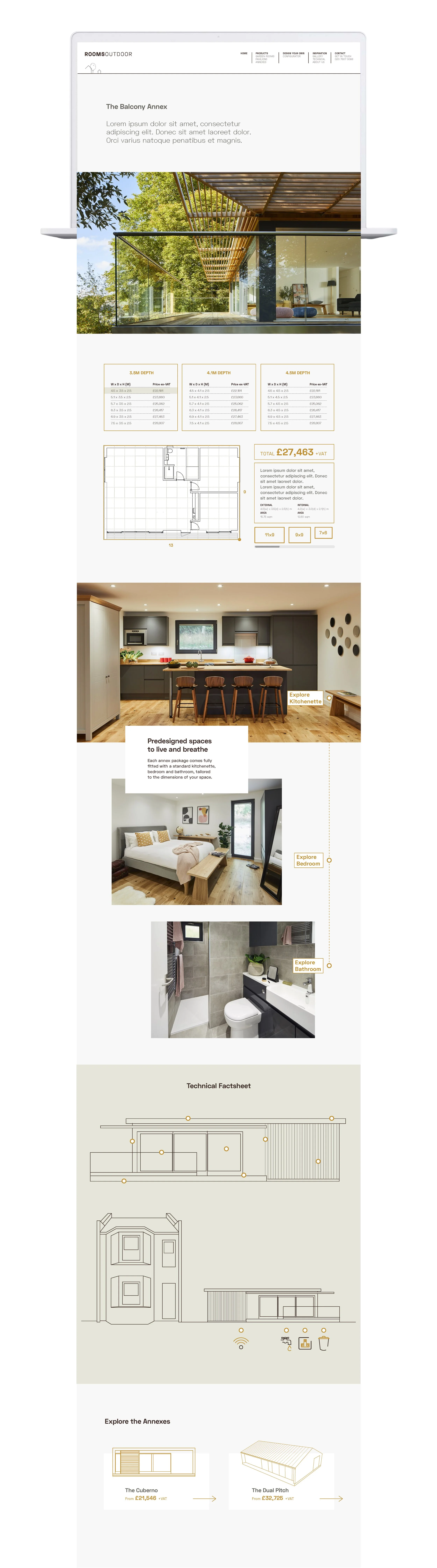 Exploratory, phased web design (UI) delivered to Rooms Outdoor, a UK market leader in bespoke garden rooms.